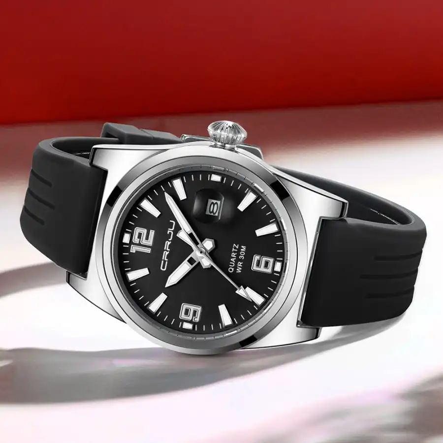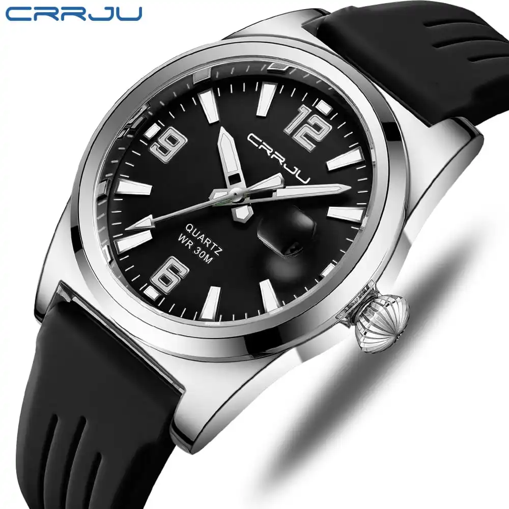 Jam Tangan Pria CRRJU 2025 Anti Air Kasual Olahraga Digital Jam Tangan Anak/Cowok Kalender Silikon Bercahaya – Hitam